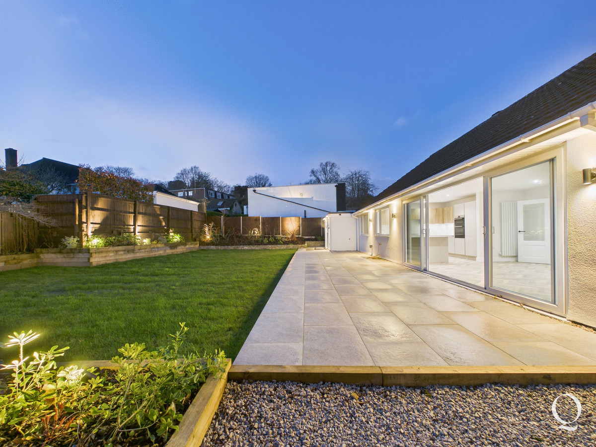 To the rear of the property there is a beautifully landscaped garden, a large patio adjoining the bungalow, level lawn and raised shrub and plant borders.